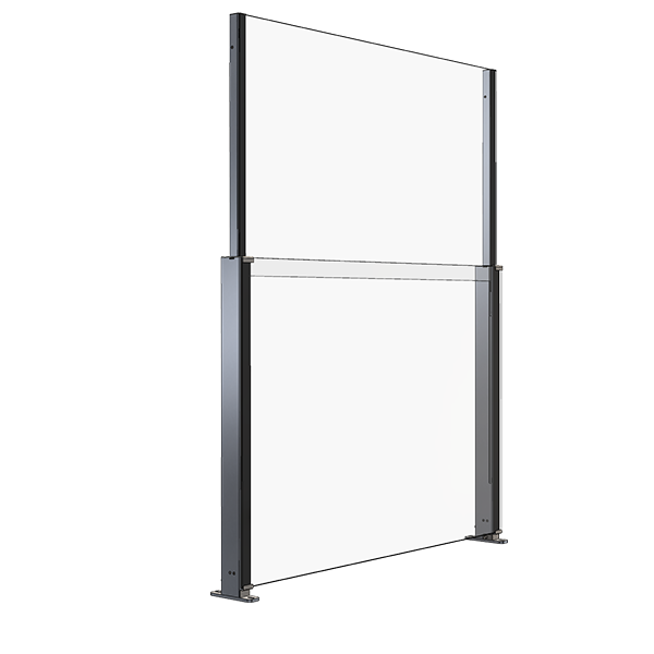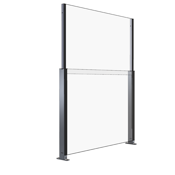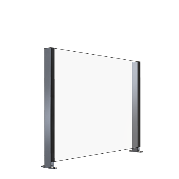 Garde-corps en verre pouvant être équipés d’une protection contre le vent réglable en hauteur.